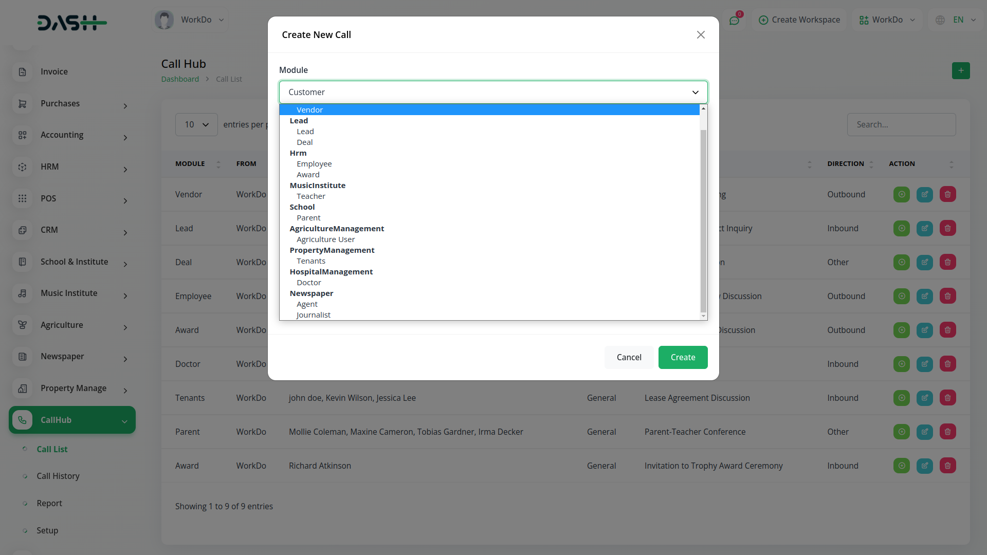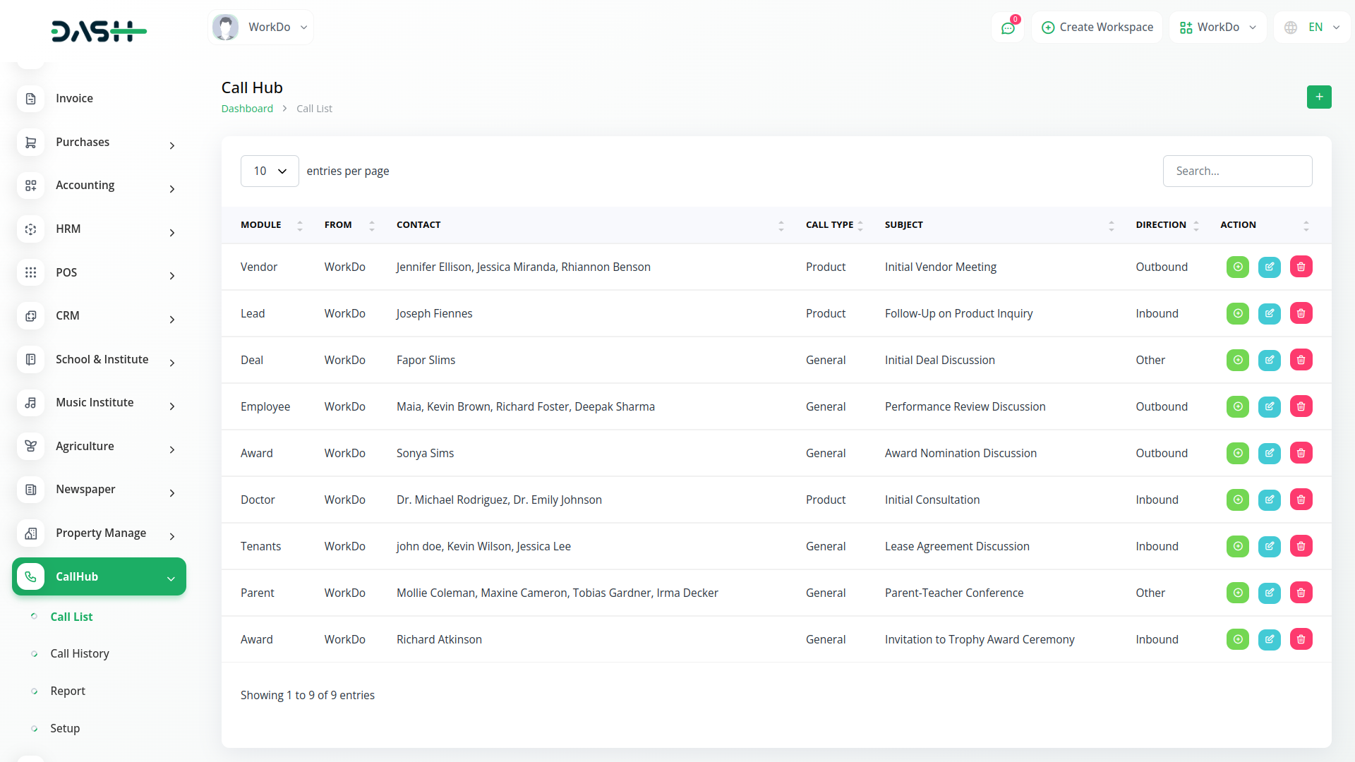 The Call Hub module is a powerful tool designed to streamline communication and enhance tracking for businesses. This module offers a range of functionalities to help companies manage their interactions with employees, customers, and clients effectively.
