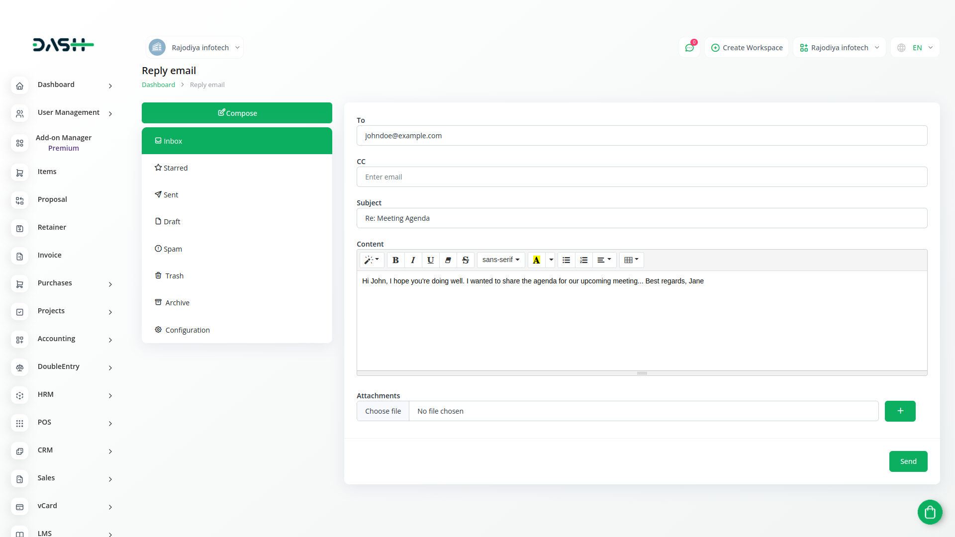 In the EMail Box module, you gain seamless access to your email folders, including Inbox, Drafts, Spam, Sent, Trash, and Archive, all hosted on your SMTP server. This powerful tool empowers users to not only retrieve emails but also interact with them in real-time.