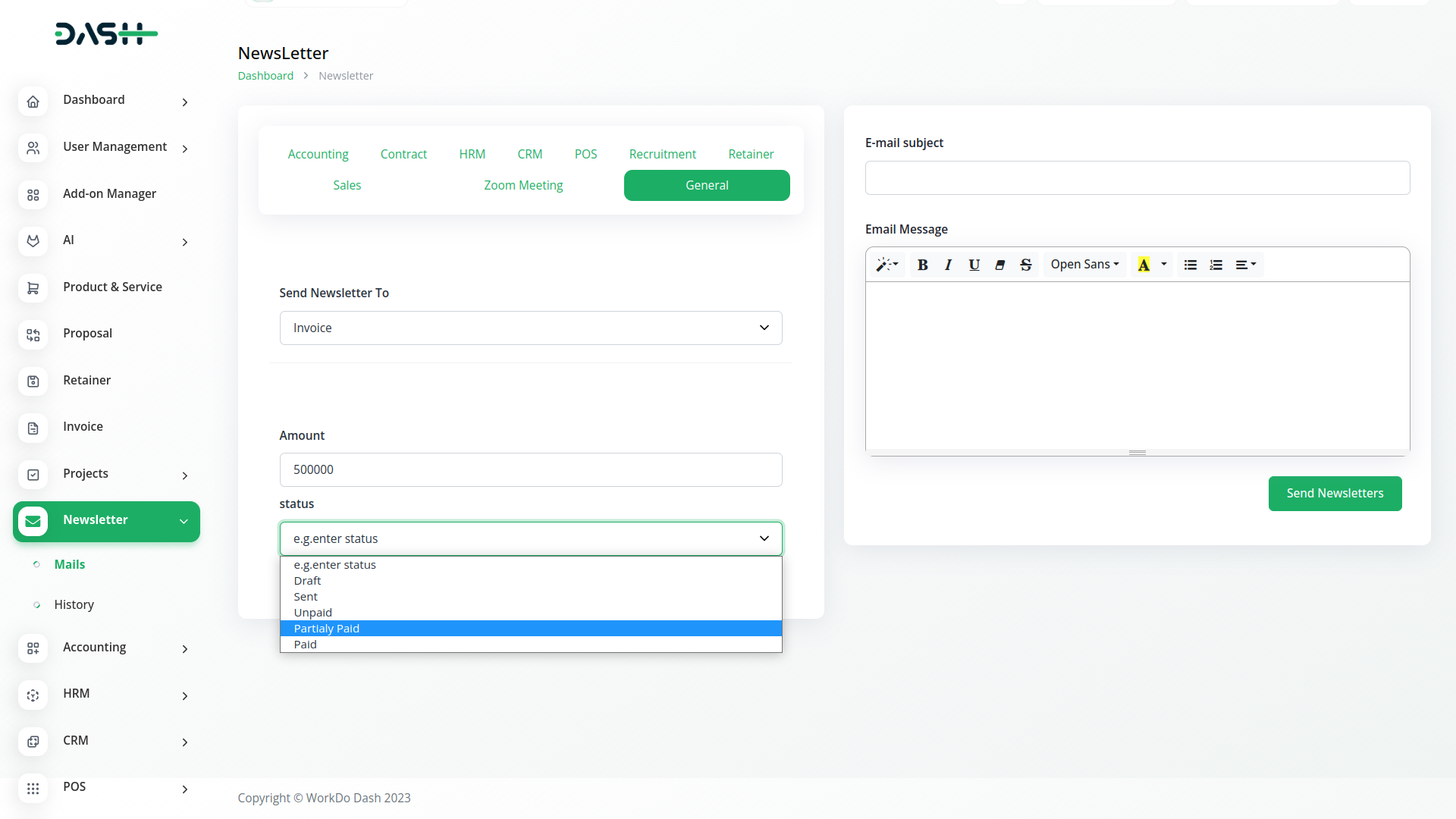 Newsletters allow you to segment your audience based on specific criteria, such as invoice status and due amounts. This segmentation ensures that you are sending relevant information to the right people, increasing the likelihood of engagement and response. Newsletter systems automate the process of sending emails to the filtered recipients, saving time and effort.